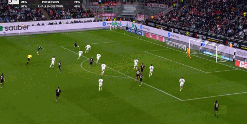第80分钟,连场破门!卡尔世界波破门,拜仁客场3-0领先门兴!